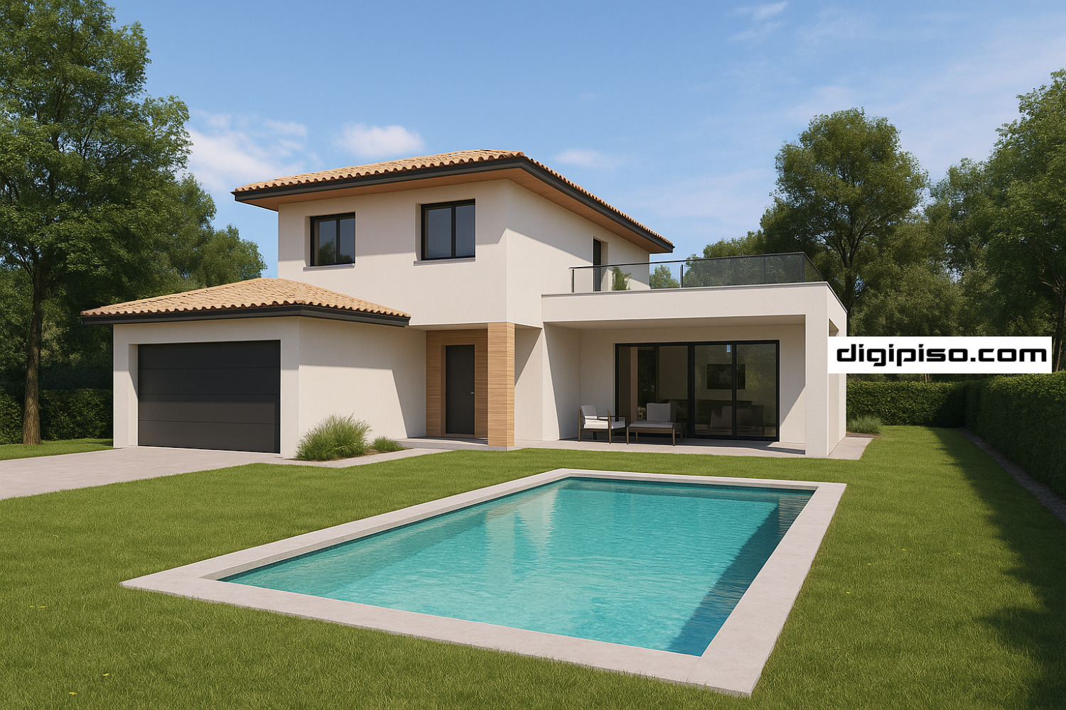 The plot offers a highly favorable layout for designing an exclusive home with spacious outdoor areas, a swimming pool, and landscaped gardens.
